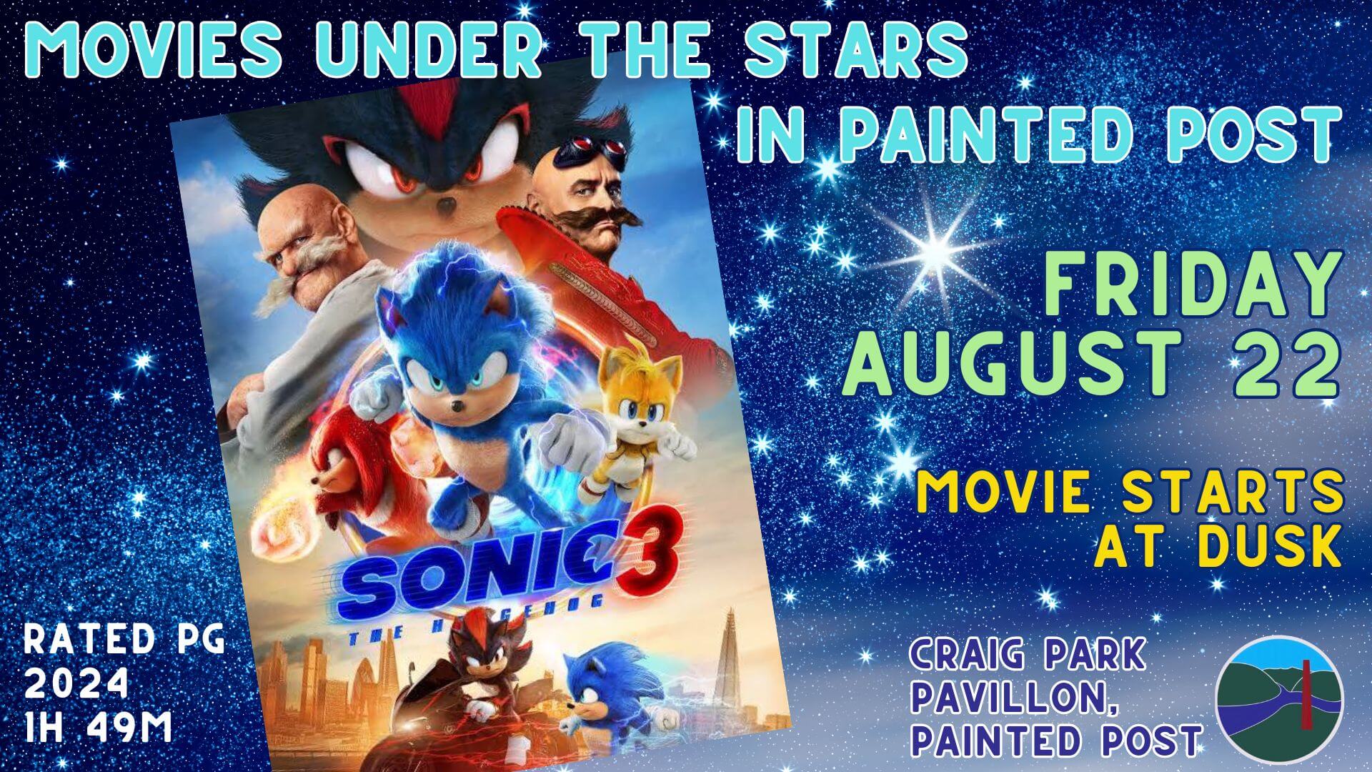 We will meet in Craig Park in Painted Post at dusk (about 8:30 PM) to watch Sonic 3.