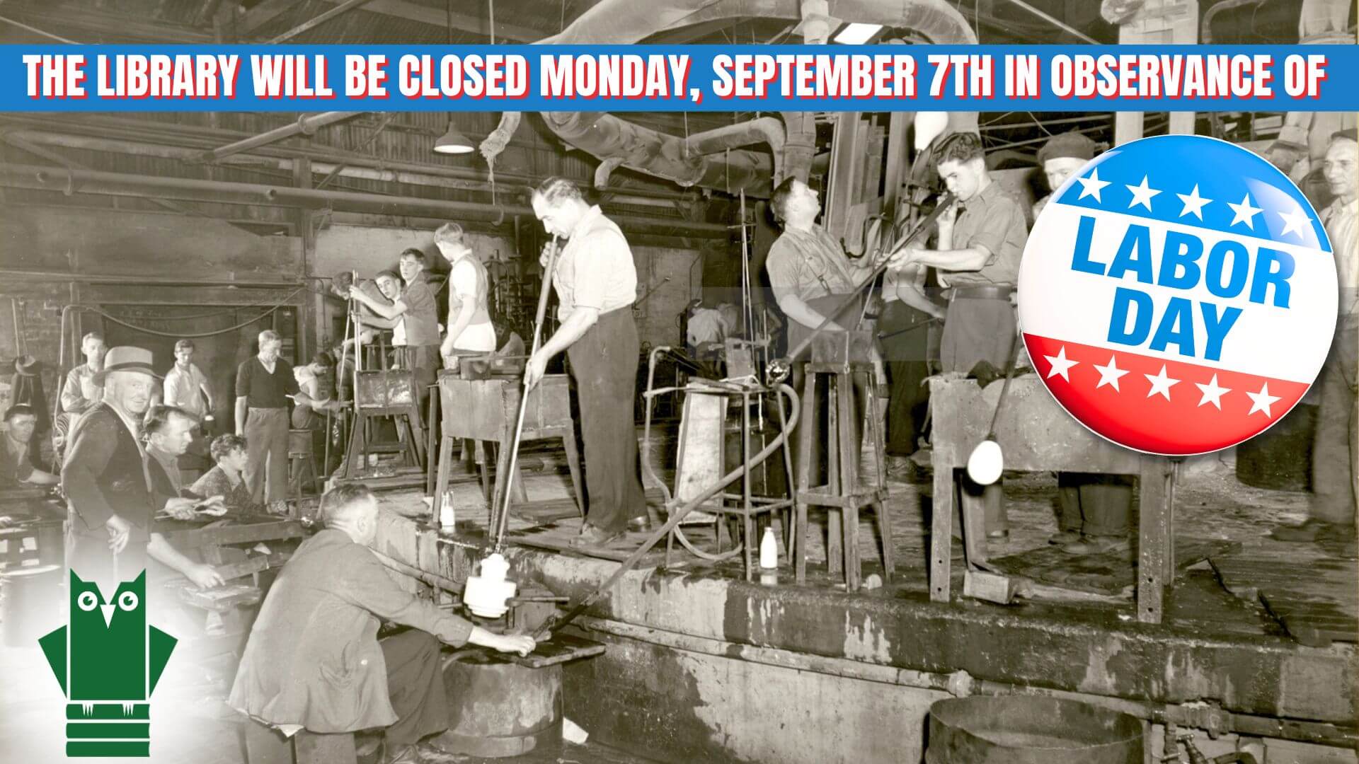 The Library will be closed on Monday, September 1, in observance of Labor Day. The Library will reopen it as usual time of 9:00 AM on Tuesday, September 2.