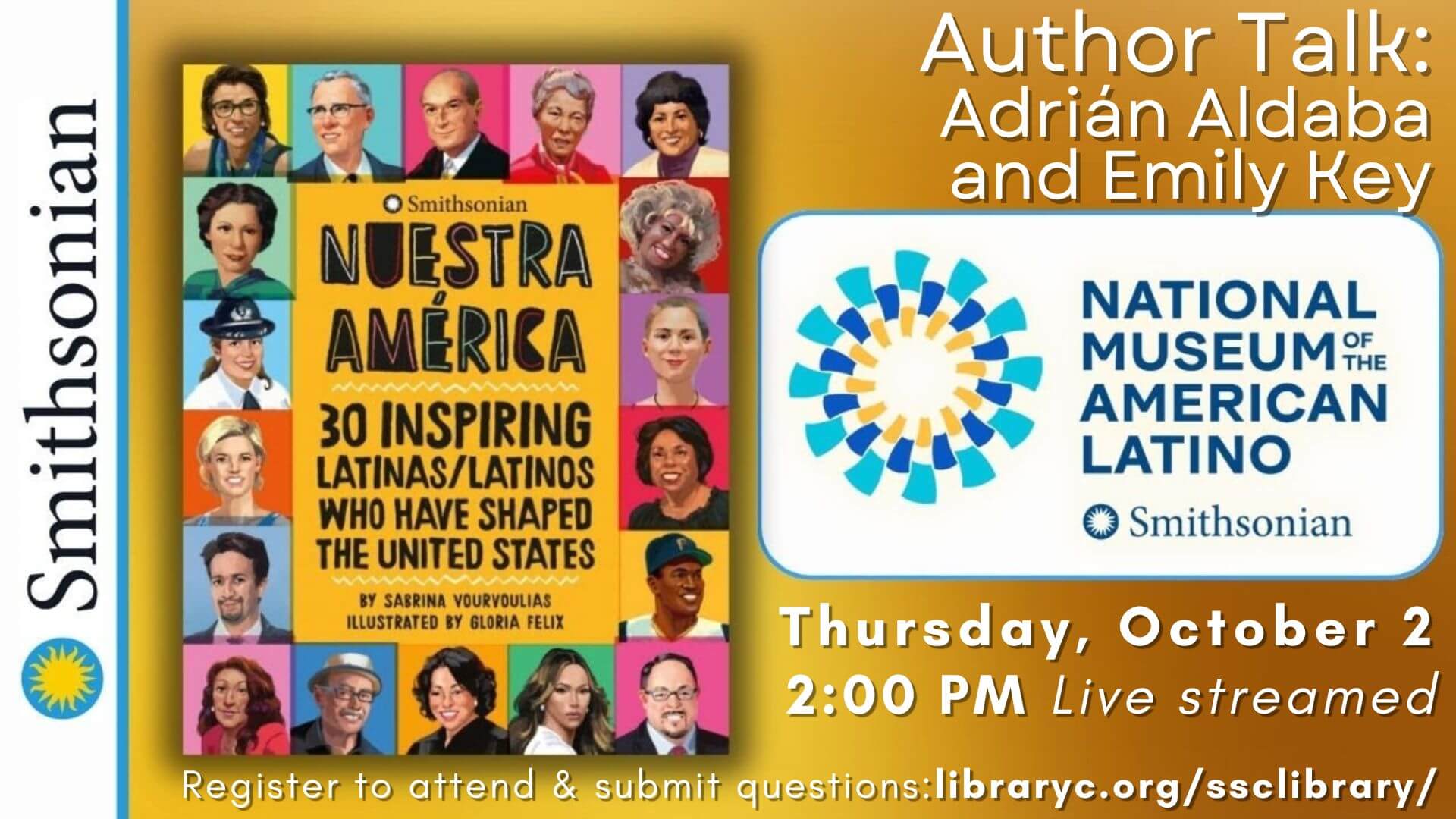 Join us in conversation with Smithsonian professionals Adrián Aldaba and Emily Key as they discuss Nuestra América: 30 Inspiring Latinas/Latinos Who Have Shaped the United States.