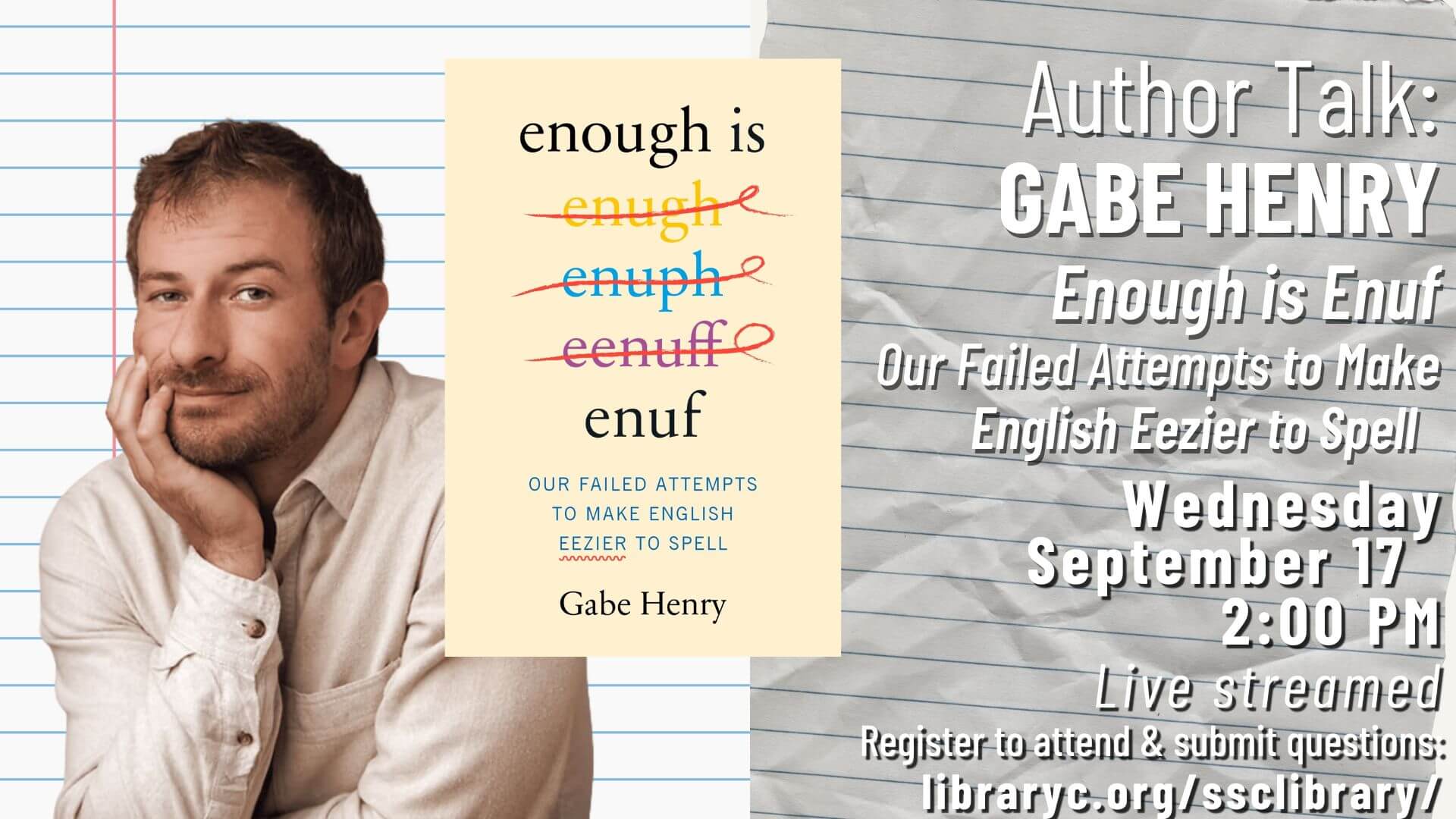 Join us for an afternoon virtual conversation with author author Gabe Henry on a surprisingly hilarious journey through the history of the English language.