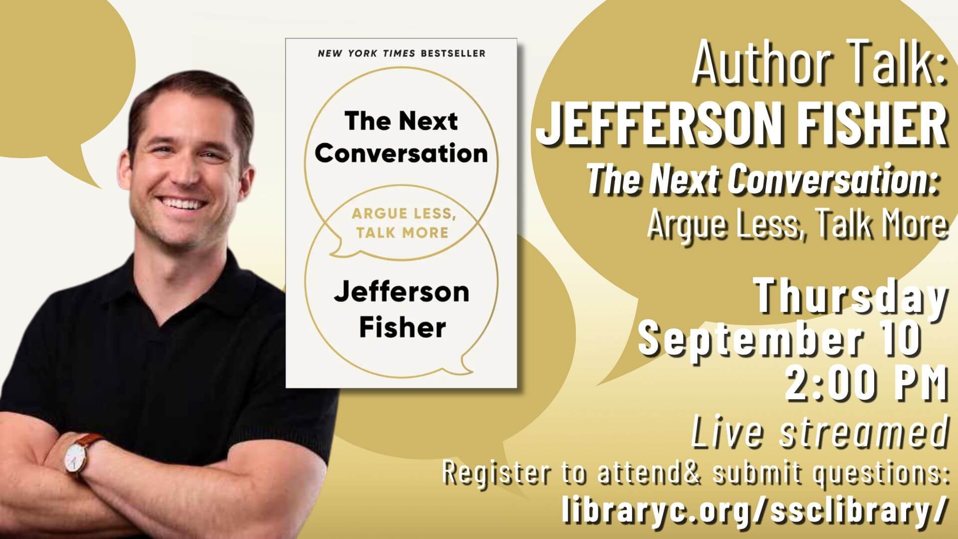 Join us (and be ready to take notes) for an afternoon virtual conversation with communication expert Jefferson Fisher, as we chat about his book, The Next Conversation: Argue Less, Talk More.