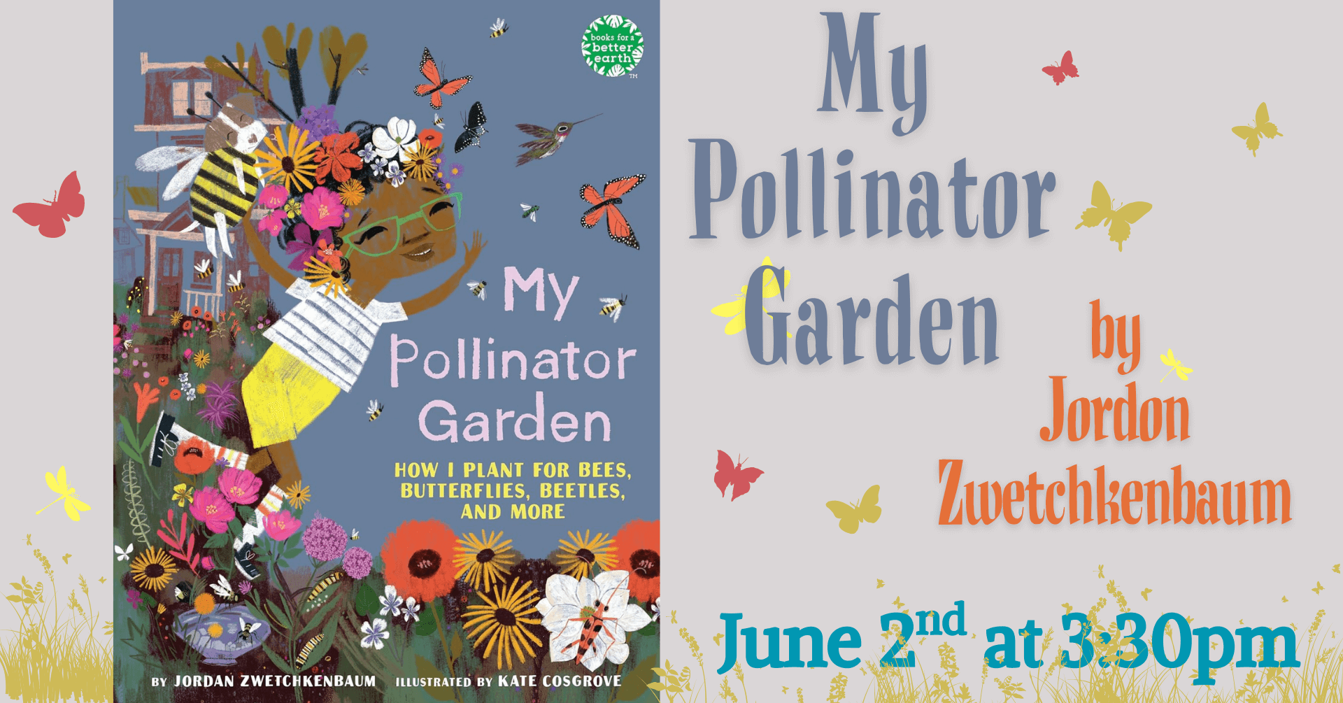 Jordon Zwetchkenbaum will read her new book, "My Pollinator Garden," and then we’ll head outside to plant our pollinator garden.