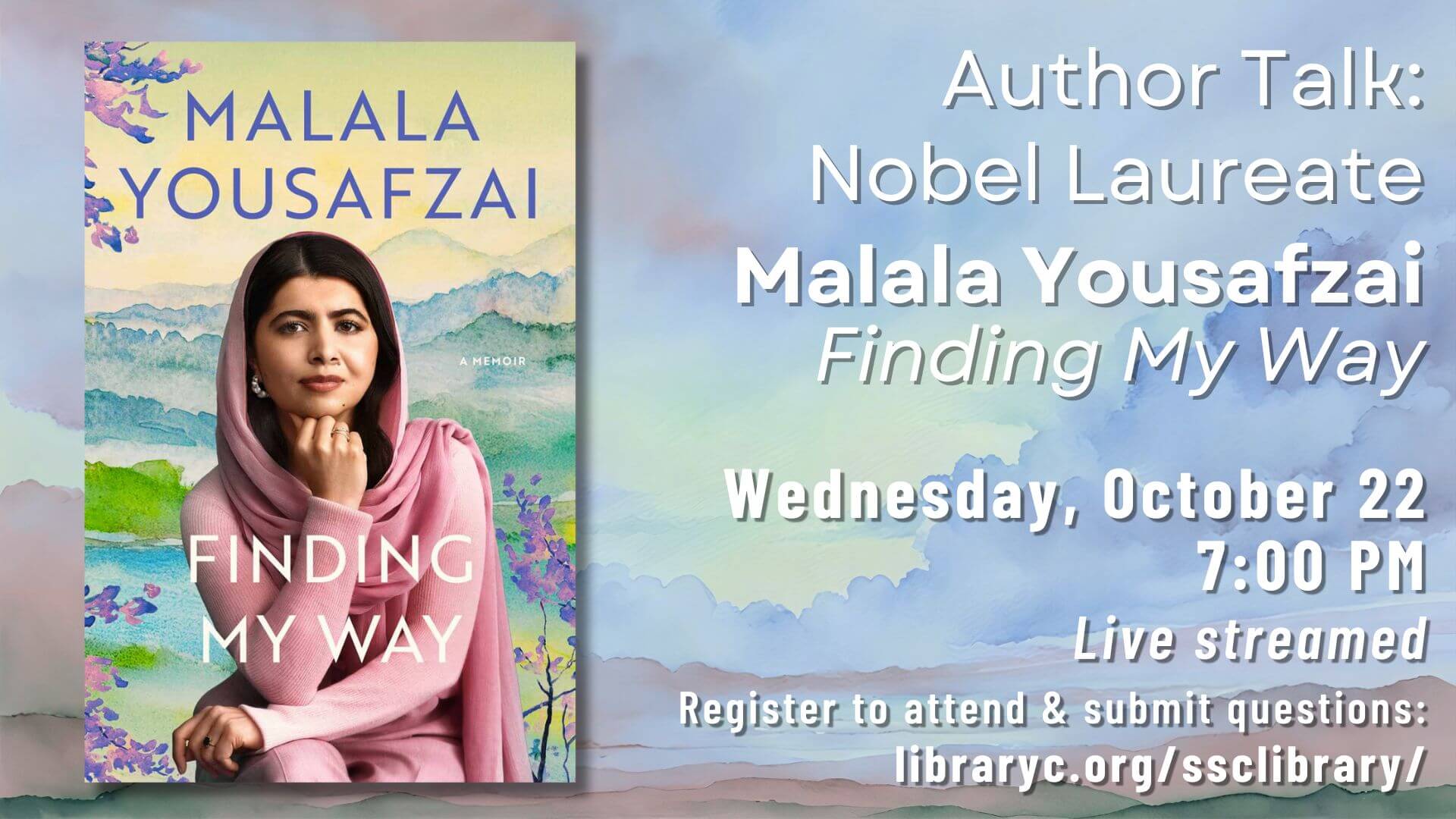 Join us to hear Nobel Peace Prize Laureate Malala Yousafzai talk about her astonishing memoir, "Finding My Way."