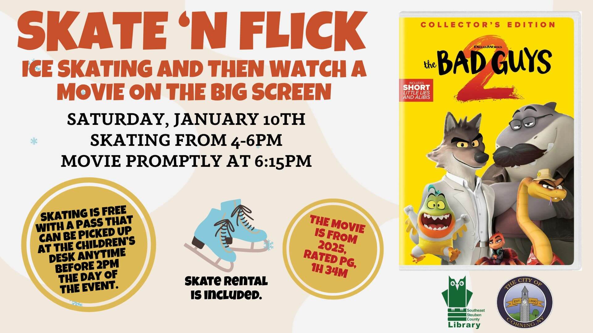 1 event,![]() Join Miss Sue and a native Spanish speaker for stories, songs and activities in Spanish. | 0 events, | 2 events,![]() On Thursdays, between 10AM and 3PM, homeschoolers can skate at the Nasser Civic Center Ice Rink for a reduced rate of $3, with a skate rental of only $1 (if you don't have your own skates). There will be no homeschool ice skating discounts on December 25th or January 1st. - ![]() Corning's Movie Club is a way for folks who love movies to connect and discuss a specially selected classic film each month. | 1 event,![]() Every Friday afternoon through June 7, Miss Sue will show a new movie for kids. All the films will start at 3:15 PM and will be rated G or PG. | 0 events, | 0 events, | |