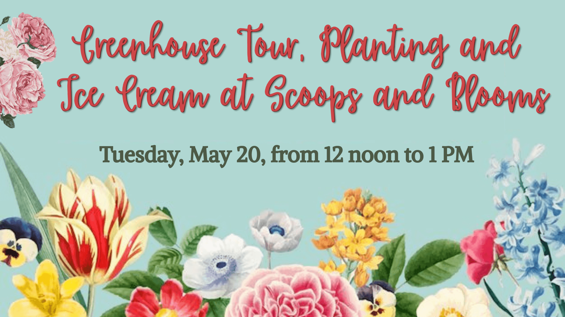 Scoops and Blooms in Bath will give us a tour of their greenhouse and explain what it takes to operate a greenhouse. For a small fee ($10) each participant will be able to plant an annual and get a small ice cream cone from the ice cream shop.